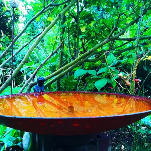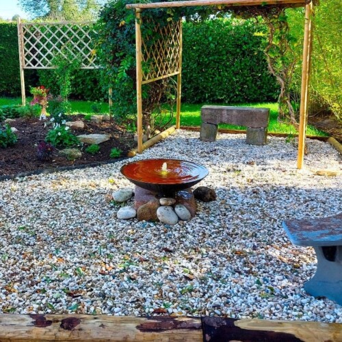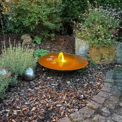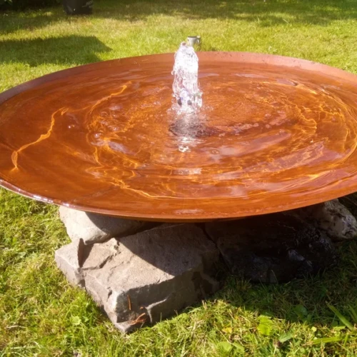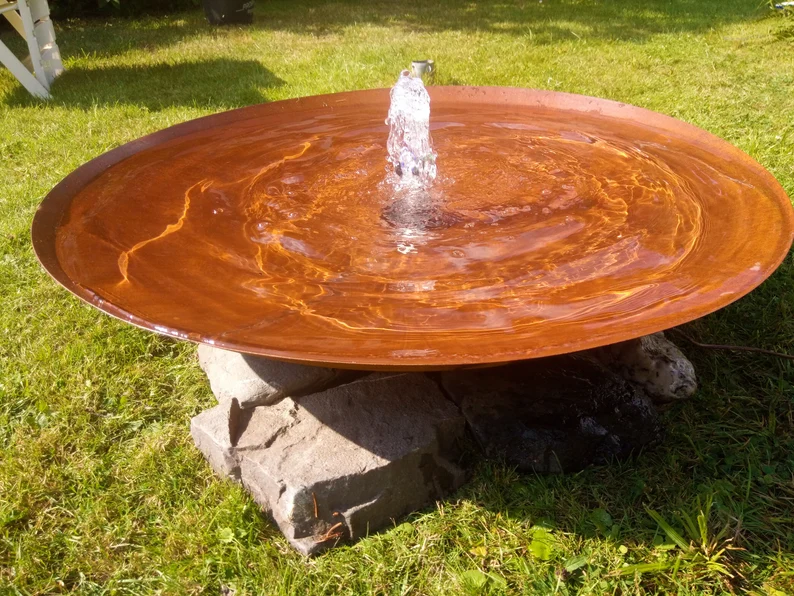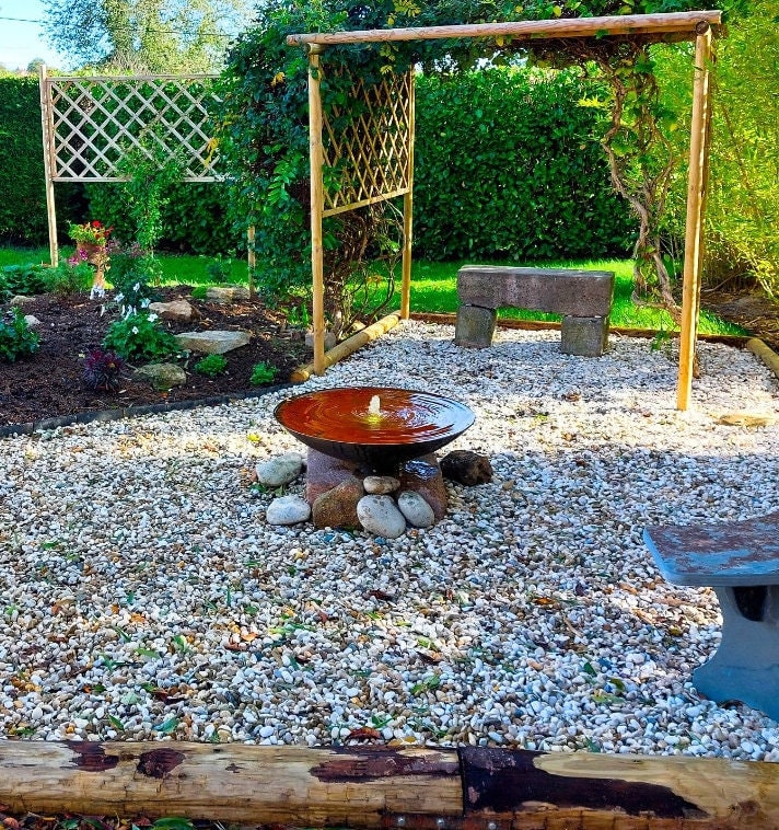 Die Schale ist dafür gedacht, auf Steinen oder Kies platziert zu werden. Durch einen mitgelieferten, unter der Schale zu platzierenden Standring kann sie aber auch auf jeglichem Untergrund festen Stand erhalten.
