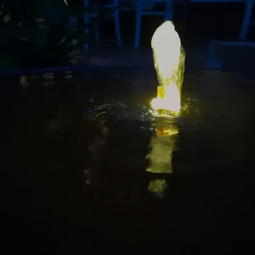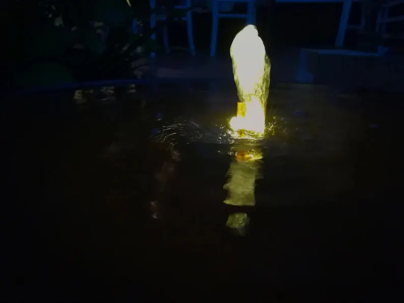 Der Wasserkreislauf zirkuliert mit Hilfe einer Pumpe innerhalb der Schale.