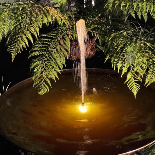 Ein wunderschöner Design-Gartentraum – Dank Beleuchtung auch in den Abendstunden.